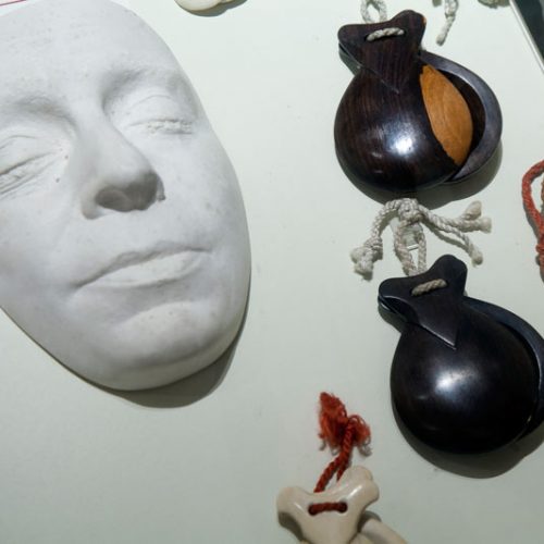 Una de las secciones mas sorprendentes de la colección de esculturas es la compuesta por las mascarillas mortuorias como la de María Guerrero, Antonia Mercé “La Argentina”, Julián Gayarre, Benito Pérez Galdós, Richard Wagner o José María Rodero.