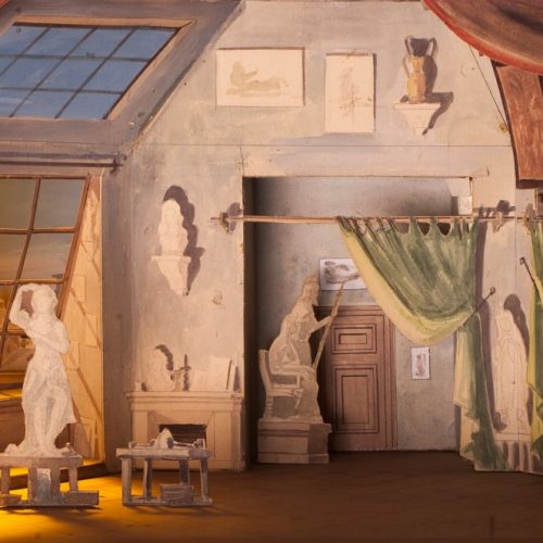 Paralelamente a la arquitectura escenográfica existe otra arquitectura realizada con materiales efímeros (papel, cartón, maderas, telas, etc), es el caso de los teatrines y modelos de teatros y escenografías. Son pequeños teatros para jugar, para su realización o para ilustrar la evolución del escenario desde fines del siglo XVII hasta nuestros días. Reproducciones tridimensionales de paisajes románticos, escenarios e interiores constituyen esta singular colección, que sin duda alguna es la más atractiva y didáctica de todo cuanto se exhibe en el museo.