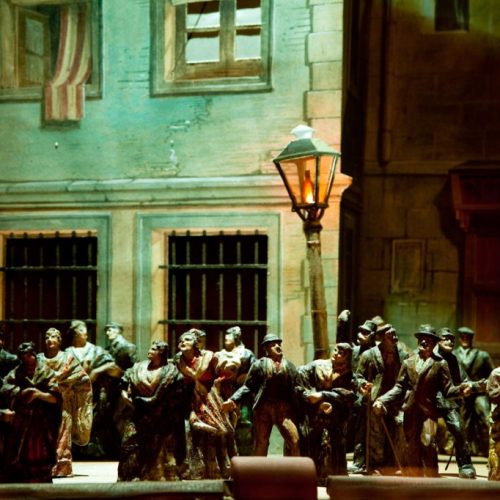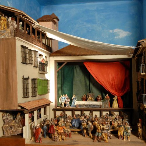 La mayor parte de las maquetas fueron construidas en los años 40 para el Museo del Teatro, otras lo fueron por encargo de los responsables de la exposición de la Sociedad de Amigos del Arte “El Teatro en España” y construidas por el escenógrafo Antonio Sendras y el escultor Luis Buendía en 1945.De estos autores son las realizadas para El Coliseo de la Cruz: El sí de las niñas; Teatro Lara: Los intereses creados; Teatro de la Zarzuela: El barberillo de Lavapiés; El Teatro Español: La escalinata de un trono; El Teatro Lírico: La Circe; Teatro Apolo: La verbena de la paloma; Teatro Real: El pescador de perlas; Teatro María Guerrero: Don Juan Tenorio… junto a modelos que representan funciones en los jardines del Buen Retiro en la corte de Felipe IV; o los de la Granja, con un concierto de Farinelli, o la representación en el Corral del Príncipe de El villano en su rincón.