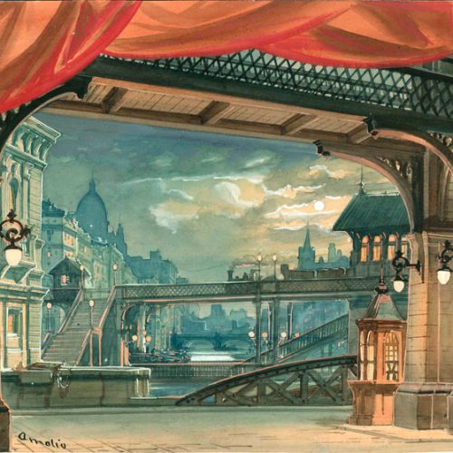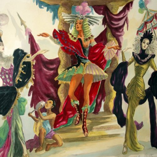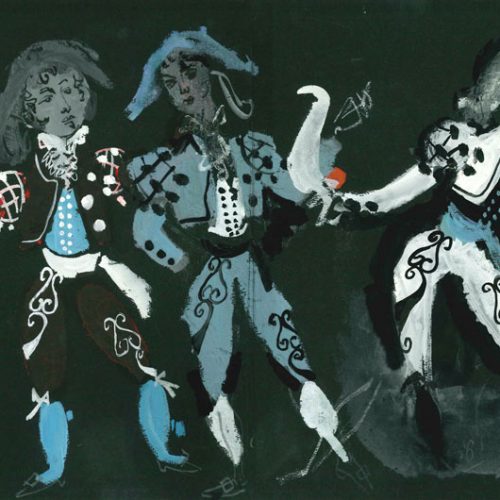 Una de las joyas del museo es un conjunto de siete dibujos, seis figurines y una escenografía, firmados por Alexandre Benois para Petrouchka, adquiridos por Luis París al pintor durante las giras por España de los Ballets Rusos de Diaghilev.