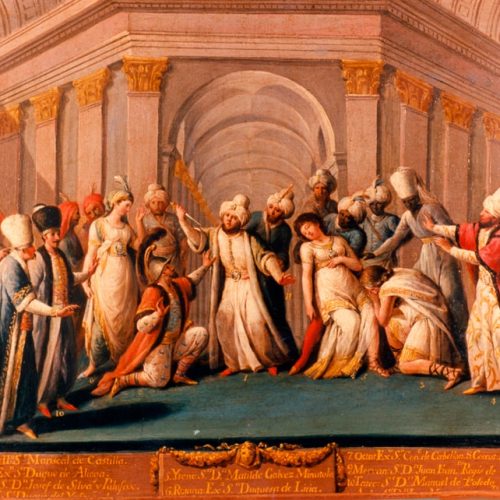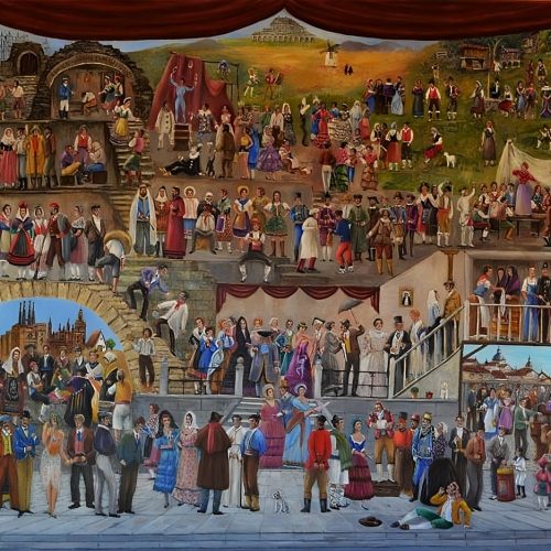 Esta colección está formada por pinturas firmadas por Juan Antonio Benlliure (retratos de Ofelia Nieto y Margarita Xirgu); Luis de Madrazo (retrato de Julián Romea); Antonio María Esquivel (retrato de Julián Romea); Anselmo Miguel Nieto (retratos de María Guerrero, Fernando Díaz de Mendoza, Ramón Mª del Valle-Inclán, Raquel Meller); Ramón Zaragoza (retrato de Adela Carboné); Navarrete (retrato de Giorgio Busato); Álvarez Dumont (retrato de Eloísa Fernández); Aurora Lezcano (retrato de Jacinto Benavente); Salvador Viniegra (retrato de Manuel Rodríguez); José María Romero (retrato de Joquina Pino); Prudent Louis Leray (retrato de Teodora Lamadrid); Juan Antonio Morales (retrato de Antonio Ruiz Soler, “Antonio”); Francisco Nieva (Atrezzo esencial); Fausto Guillén (retrato de Antonio Gala); José Caballero (bocetos de carteles para Yerma o Mariana Pineda); Eduardo Armenteros (Alegoría de la zarzuela)…que representan a los principales actores y actrices del momento. Este tipo de retrato pone de relieve la consideración social que ya han alcanzado éstos últimos durante el siglo XIX, convirtiéndose en clientes preferentes de los grandes pintores de la época.